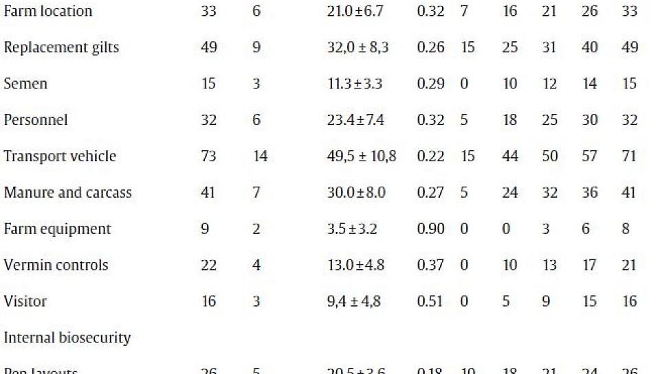 В первом исследовании свиноводческие предприятия были разделены на две группы: контролируемые и неконтролируемые по РРСС. Были проанализированы меры биобезопасности, наиболее релевантные для контроля заболевания. В результате были выделены семь ключевых характеристик, включая контроль используемого семенного материала и поддержание необходимой среды в животноводческих помещениях, которые являются критически важными для эффективного контроля РРСС.