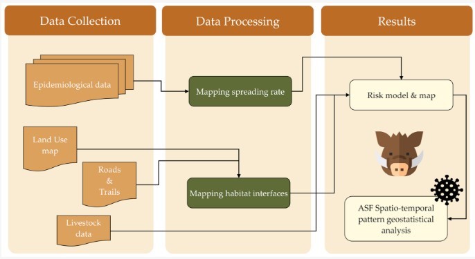 Пространственный анализ выявил, что в центральных и западных муниципалитетах вероятность возникновения вспышек заболевания была выше вследствие благоприятных экологических условий и высокой плотности популяций диких кабанов. В периферийных районах вспышки наблюдались с задержкой. Картографирование скорости распространения инфекции и определение границ ареалов обитания позволили разработать пространственную модель оценки риска. Данная модель была дополнительно проанализирована с применением геостатистических методов для детального изучения динамики заболевания. Результаты исследования демонстрируют эффективность геопространственного моделирования в идентификации зон повышенного риска, выявлении пространственно-временных закономерностей и поддержке целевых стратегий профилактики и надзора.