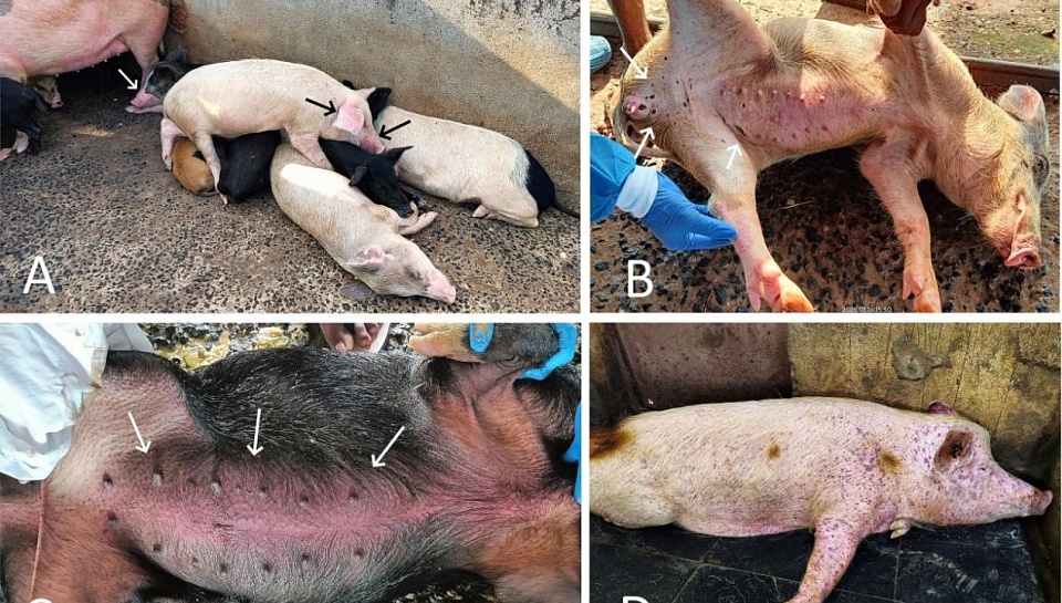 В период с января по июнь 2025 года на двух свинофермах, расположенных в Северном Гоа, был зафиксирован чрезвычайно высокий уровень смертности среди поголовья свиней, составивший 95–96 %. У заболевших животных наблюдались следующие клинические признаки: гипертермия, угнетённое состояние, цианоз, диспноэ и обширные кожные геморрагии. В результате патологоанатомического исследования были выявлены следующие патоморфологические изменения: спленомегалия, гепатомегалия, выраженная застойная гиперемия почек с петехиальными геморрагиями, геморрагическая лимфаденопатия и венозная гиперемия. Гистопатологическое исследование показало значительное истощение лимфоидной ткани, наличие некротических изменений и геморрагий в селезёнке и лимфатических узлах, а также гломерулонефрит. Методом ПЦР во всех исследованных образцах было подтверждено присутствие вируса АЧС. Филогенетический анализ продемонстрировал, что изоляты относятся к генотипу II и полностью идентичны ранее выявленным индийским и азиатским штаммам, что указывает на продолжающуюся циркуляцию данной линии вируса в регионе.