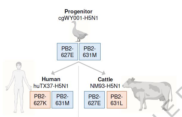 Вирус высокопатогенного гриппа птиц A(H5N1) продолжает демонстрировать необычные свойства. Исследовательская группа выделила изолят вируса от инфицированного работника фермы и установила, что данный вирус способен не только реплицироваться в клетках дыхательных путей человека, но и является летальным для мышей и хорьков. Зафиксирована респираторная передача вируса у хорьков, что не наблюдалось в экспериментах с изолятами, выделенными от коров. Отмечается, что у инфицированных людей тяжёлые формы заболевания не развивались, симптомы ограничивались конъюнктивитом и лёгкими респираторными проявлениями. Предполагается, что многократное инфицирование сезонными вирусами гриппа может обеспечивать некоторую защиту от вируса A(H5N1), однако это требует дальнейших исследований. Авторы подчёркивают необходимость сдерживания вспышек вируса среди молочного скота для снижения риска заражения людей