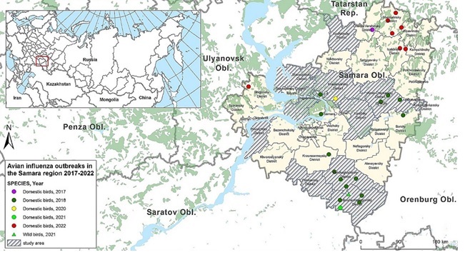 Грипп птиц является глобальной проблемой, затрагивающей как птиц, так и млекопитающих, и вызывающей значительные экономические потери. В 2022 году было зарегистрировано более 8500 случаев заболевания, с подтипом H5, ответственным за многочисленные вспышки. В Российской Федерации с 2020 года наблюдаются массовые вспышки среди домашних и диких птиц. Дикие перелётные птицы служат естественными резервуарами вирусов, а межвидовое взаимодействие может привести к появлению новых высокопатогенных вариантов. В 2021 году в Самарской области были проведены мониторинговые исследования для диагностики и характеристики циркулирующих вариантов вируса среди диких птиц. Был выявлен высокопатогенный вирус A/H5N1 у кряквы, который показал родство с изолятами из России, Нигерии, Бангладеш и Бенина. Исследование подчёркивает важность мониторинга и обмена информацией для оценки рисков, а также необходимость дальнейших исследований для понимания путей распространения вируса.
