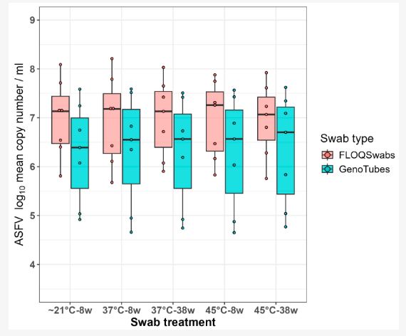 Проведена оценка эффективности трёх типов сухих тампонов для сбора крови и обнаружения нуклеиновой кислоты вируса АЧС с помощью ПЦР. Все три типа тампонов, включая простые ватные, нейлоновые («FLOQSwab») и для генотипирования скота («GenoTube»), показали надёжные результаты. Также установлено, что тампоны GenoTube обеспечивают высокую точность обнаружения вируса и антител в полевых условиях.