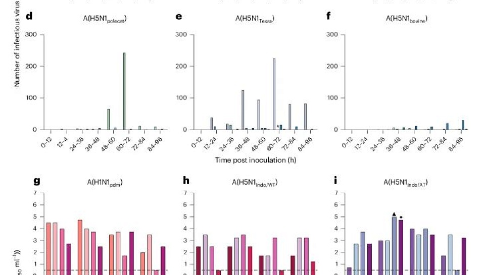 В исследованиях по оценке риска для здоровья населения, связанного с вирусами гриппа A(H5N1), часто используют хорьков-реципиентов для изучения передачи вируса воздушно-капельным путем. Хотя такие исследования предоставляют ценные данные о потенциале передачи, информация о кинетике выделения вируса в воздух остается недоступной. Это оставляет нерешенными вопросы о том, почему вирусы гриппа птиц не передаются между млекопитающими: из-за отсутствия выделения вируса в воздух или из-за отсутствия необходимых маркеров адаптации для заражения нового хозяина.
